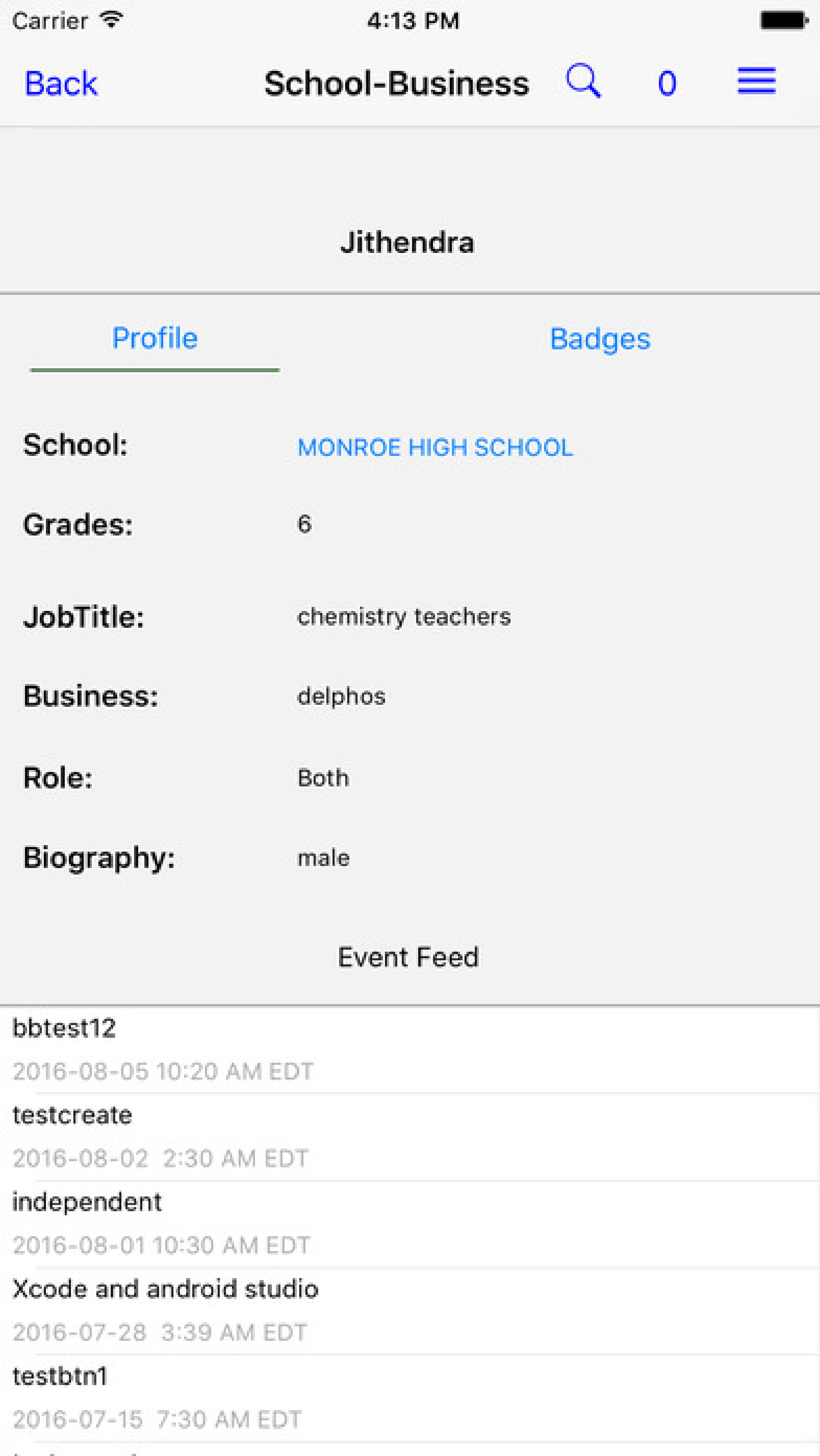 Our application helps to connect educators and their communities by creating events in their classrooms that members of the community can then bid on for the opportunity to do outreach to share professional insight in the classroom environment.